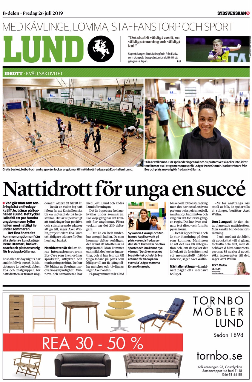 By launching "Eoshallen Friday Nights", Eos Cares drew the local media's attention this summer, the event making Sydsvenskan Lund's edition front page twice!